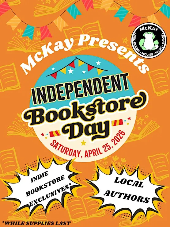 Meet authors and discover your next book to read at McKay Used Books in Manassas, VA for Independent Bookstore Day! Myself and other authors will be selling our books and connecting with readers from 11 AM to 3 PM next Saturday, April 25, 2026. If you find the Golden Ticket, you win a year supply of Audiobooks and there will be other exclusive giveaways while supplies last.