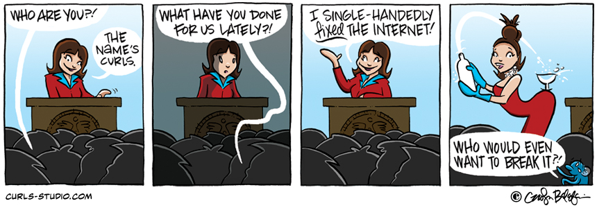 Al Gore maybe have invented the internet, Kim Kardashian broke it, but Curls fixed it! We’ll be following Curls’s run for The White House and learning more about Curls and the gang as the weeks go on, but if you’re already a supporter, head[…]↓ Read the rest of this entry…