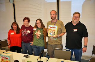 I got to attend my first Harvey Awards, which is a nice dinner and awards show hosted on Saturday night. The winner for “Best Online Comics Work” was Mike Norton’s Battlepug. Since he was not present, Baltimore Comic-Con asked me to accept the award on his behalf, but I didn’t know who was going to win until the announcement was made to everyone. The lights were very blinding on stage, but my big joke was that I didn’t fall down when stepping up to the stage, so that’s winning half the battle!
