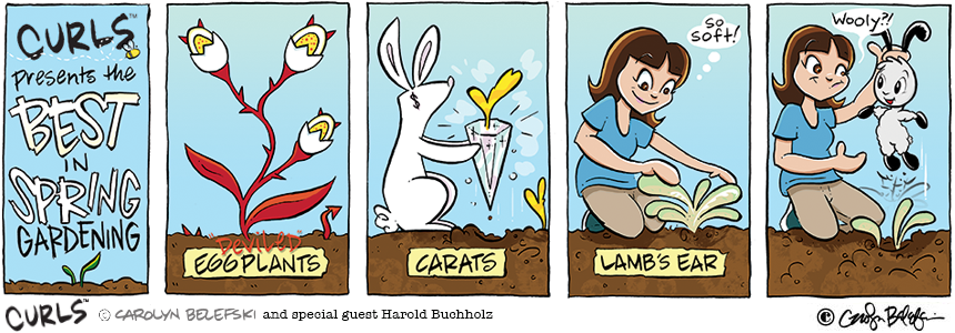 I’m curious to know what goes on underground in the Curls comic strip because not only was there a glowing disco worm recently, but now Curls found Wooly amongst the Lamb’s Ear plants! Wooly is a character from Sweetest Beasts[…]↓ Read the rest of this entry…