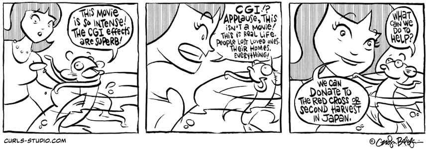 Curls and Applause the Fighting Fish are here to let you know our friends in Japan need your help. Entire towns have been wiped off the map. There’s a shortage of food and supplies! Please give what you can at[…]↓ Read the rest of this entry…
