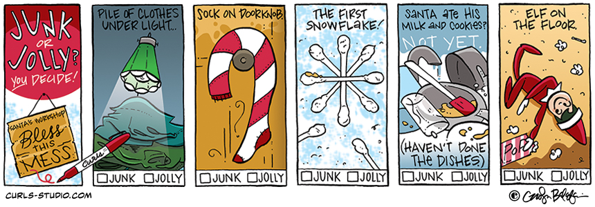 What’s your holiday mess? Please share in the comments. Thanks for reading the Curls comic strip — the pile of clothes under light was inspired by a “true story” — I’ll post about it in my Instagram (@CarolynBelefski) stories soon.[…]↓ Read the rest of this entry…