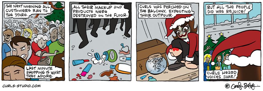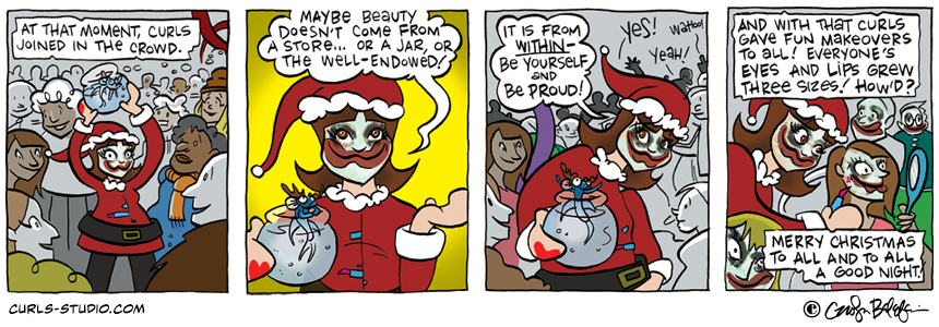 Here’s a special Tuesday edition of Curls. Enjoy it, it’s my Christmas gift to you! Thanks for reading. If you missed the beginning of this Curls storyline (“War on Beauty”), start it here: http://www.curls-studio.com/curls/?p=1983 XOXO, Carolyn Subscribe to Curls!