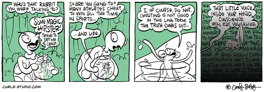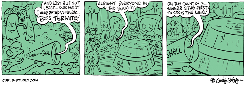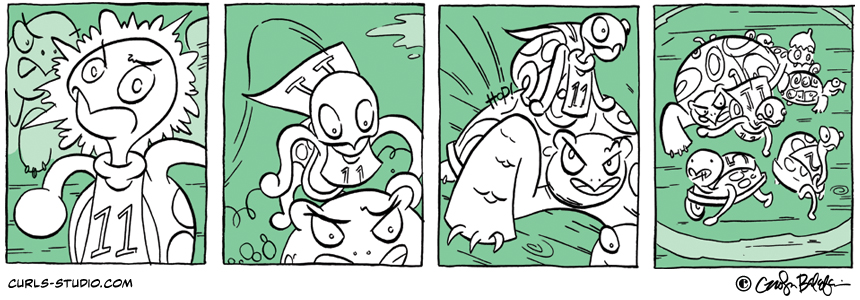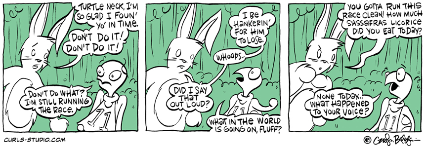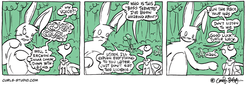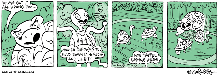 The Turtle Derby results are in! 1. Lil Bit 2. Mini Necka 3. Turtle Neck We hope you will join us this Saturday, October 27 for Annapolis Comic-Con. See you there! If you missed the beginning of this Curls storyline[…]↓ Read the rest of this entry…