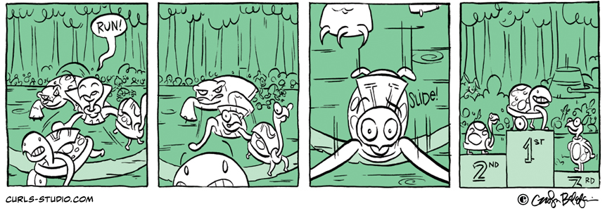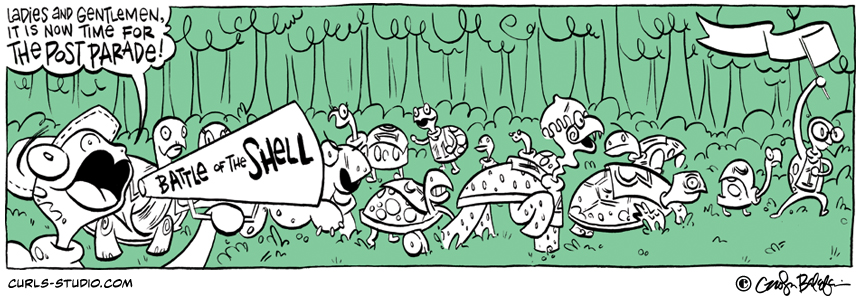The race is almost here — now for the post parade! If you missed the beginning of this Curls storyline (“Turtle Derby”), start it here: http://www.curls-studio.com/curls/?p=1566 XOXO, Carolyn Subscribe to Curls!