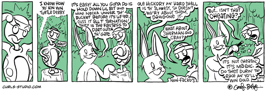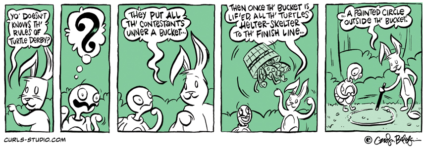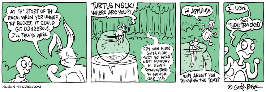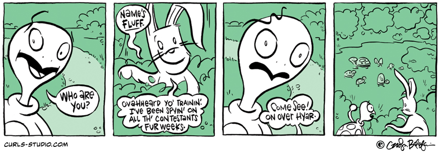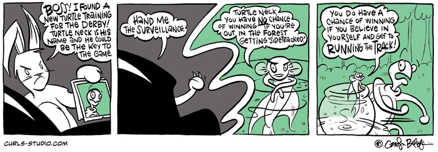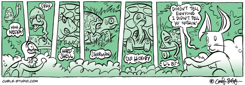 If you missed the beginning of this Curls storyline, start it from the beginning here: http://www.curls-studio.com/curls/?p=1566 Enjoy this gallery of turtles. Which do you think might be Turtle Neck’s toughest opponent? XOXO, Carolyn Subscribe to Curls!