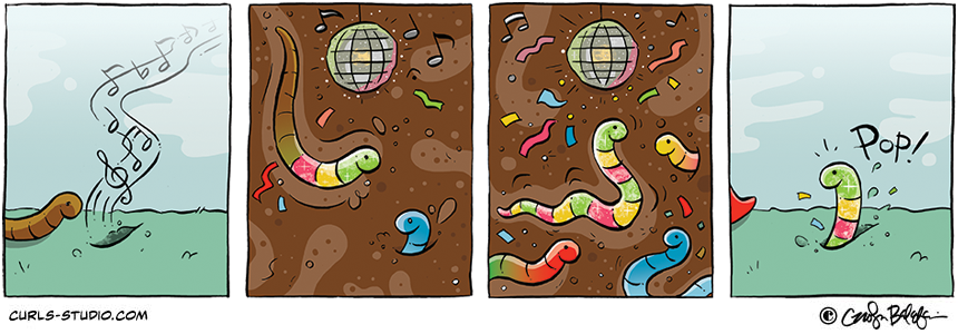This is the third strip of the Gum-My! comic storyline. I figured after a poop joke that this is where it should go next. Hope everyone has a great holiday season and par-tays underground like this worm. I hope to[…]↓ Read the rest of this entry…