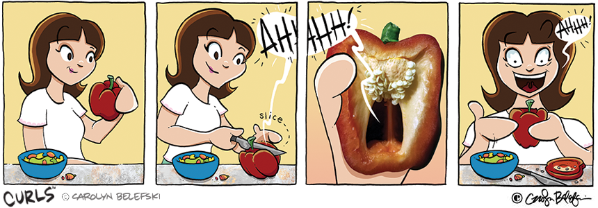 Would you believe it? I won Best Pickle in the first annual Sloppy Mama’s BBQ homemade pickle contest at their Pickle Party. I entered two types of pickles inspired by my Curls comic strip: dill and watermelon rind, and the dill[…]↓ Read the rest of this entry…