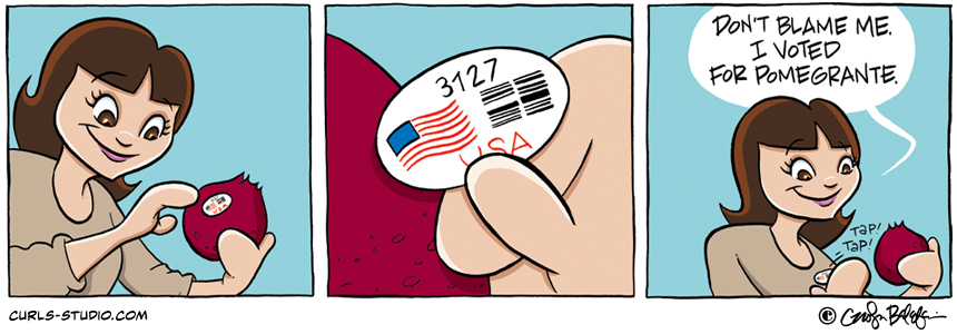 This comic is relatively true — although I really didn’t write-in pomegranate as a candidate — I did have this thought process and wore my pomegranate sticker all day at work on a day leading up to the election back in November. Hope[…]↓ Read the rest of this entry…