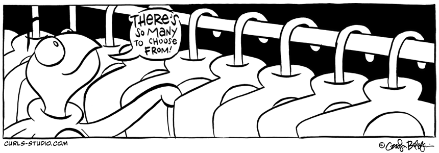 The phrase “There’s So Many To Choose From” comes from Scott Mosier on the SModcast podcast with Kevin Smith. I enjoy listening to the whole SModcast network when I work. Fun shows. From the Curls world, I love how Turtle[…]↓ Read the rest of this entry…