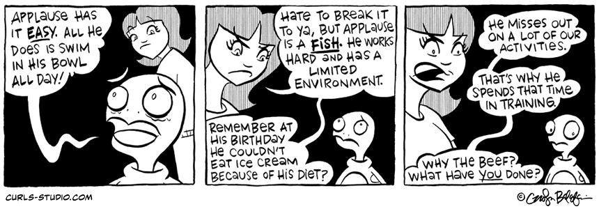 What in the world is going on with Turtle Neck! Do you think Curls is being too harsh on him? If you missed the kick-off to this new Curls storyline, just click to start it up here: http://www.curls-studio.com/curls/?p=1566 And I[…]↓ Read the rest of this entry…