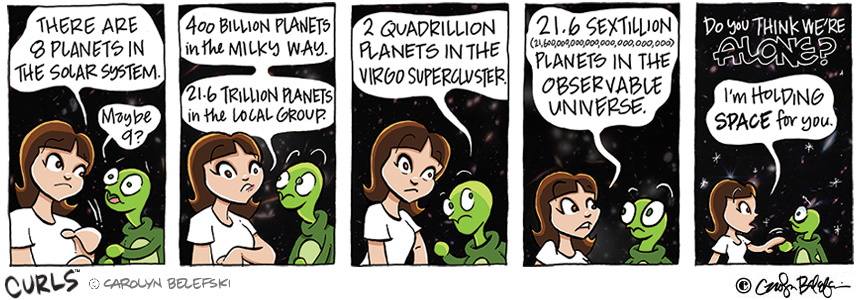 Hope you all have a Happy New Year! Do you think we are alone in this universe? What else is out there? © Carolyn Belefski Patreon X Instagram Facebook Subscribe to Curls!
